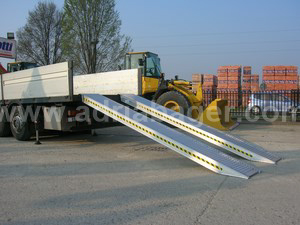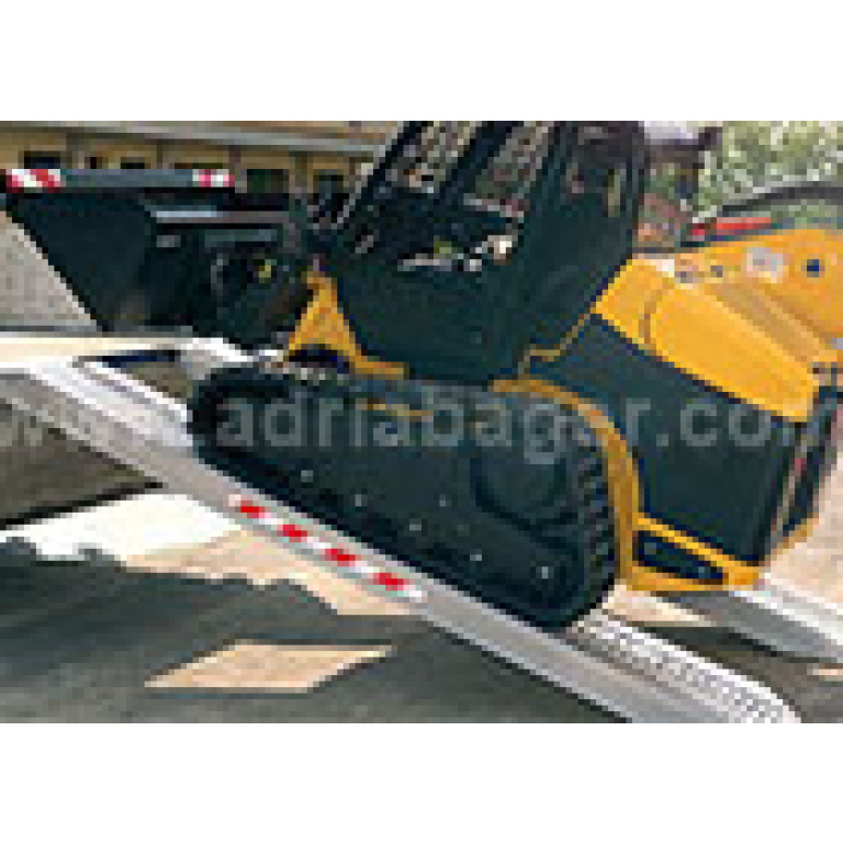 Nakladalne aluminijaste rampe z robom za naklad delovnih strojev (samo za uporabo z gumi gosenicami ali pnevmatikami). Specifikacije modela CR.150/40:
