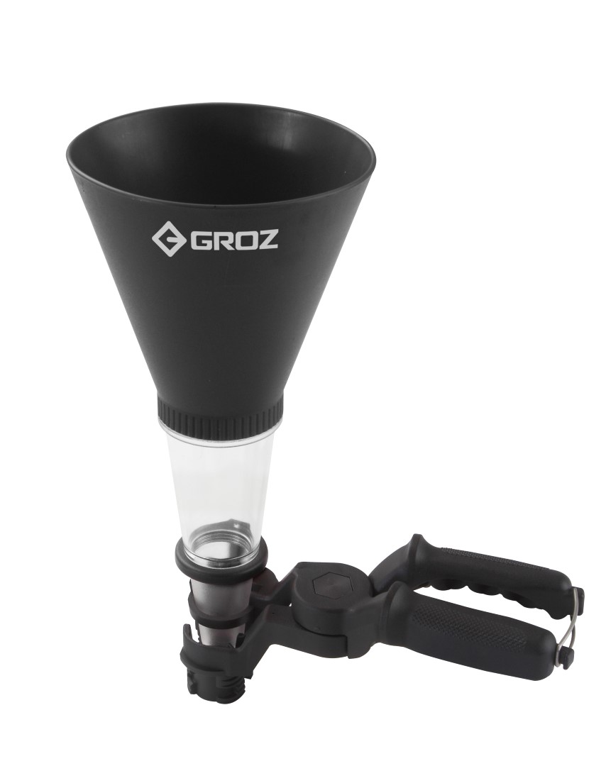 Univerzalen lij primeren za točenje motornega olja, nafte, diesel goriva itd.. Posebna izvedba z vzmetenimi pritrdilnimi kleščami, katere tesno objamejo odprtino širine od 25 do 80 mm in preprečujejo razlitje tekočine. Spodnji del lija je transparenten, kar omogoča spremljanje nivoja tekočine in onemogoča prenapolnjenje .